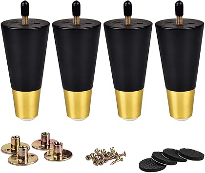 10cm Holz Tischbeine La Vane 4x Schwarz Massivholz Konisch Mobelfusse Mobelbeine Mit Gold Messing Abdeckung Vorgebohrten M8 Bolzen Montageplatten Schrauben Fur Sofa Bett Schrank Stuhl Amazon De Baumarkt