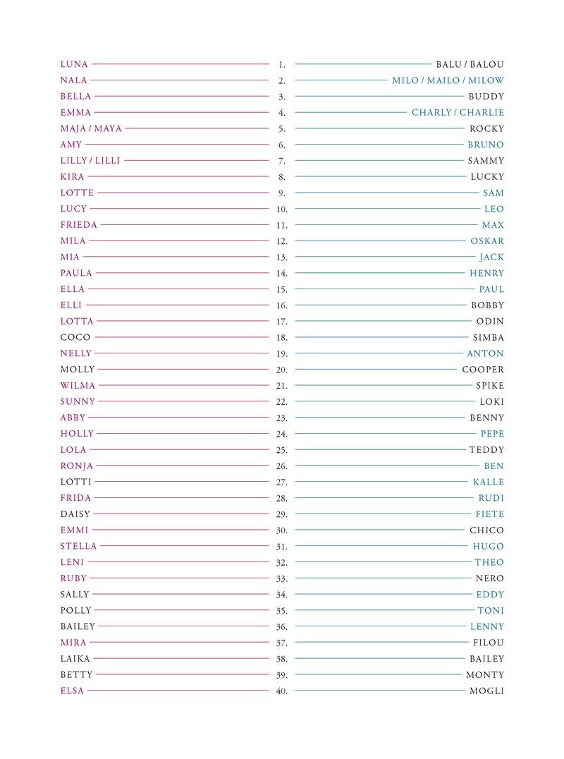 Hunde sind aber mittlerweile ein unverzichtbares Mitglied der Familie und Sie geben ihren Kindern doch schließlich auch keine Nummern als Namen. Allerdings gibt es über das Thema unzählige Ratgeber die den Eltern bei ihrem Problem helfen.