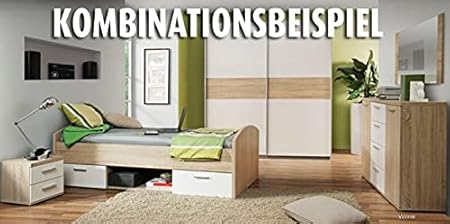 2900 Kleiderschrank - Sonoma Eiche - weiß - 181 cm breit 33199 Rollerde. 4900 idealShopping GmbH Hochschrank mit Apothekerauszug. Die Kommode verfügt über eine Tür vier Schubkästen und fünf offene Fächer.