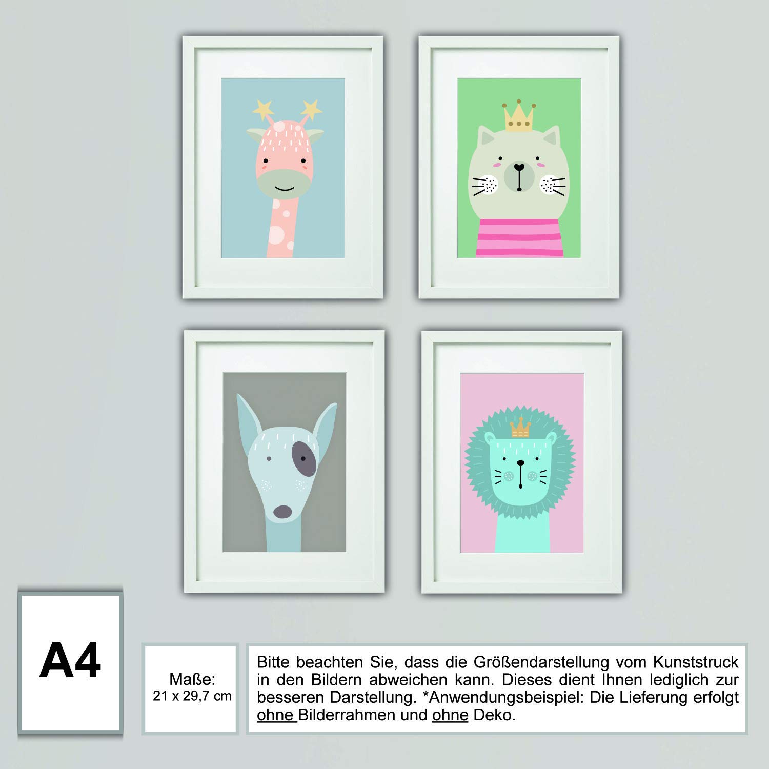 Tierbilder Kinder Baby Kunstdruck Kinderzimmer Poster Tiere A4 Tier Bilder Ohne Bilderrahmen Babyzimmer Kinderposter Amazon De Handmade