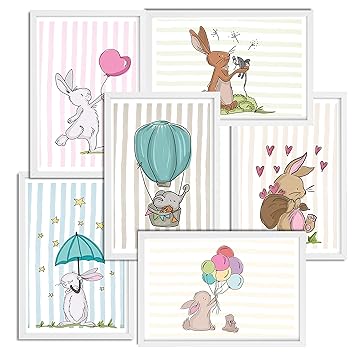 Poster Set Mit Niedlichen Tieren Fur Baby Oder Kinderzimmer Wanddekoration Fur Madchen Und Jungen Mit Sussen Tieren Set Aus 6 Stuck Ohne Rahmen 13x19cm Fotopapier Pastellfarben Amazon De Baby